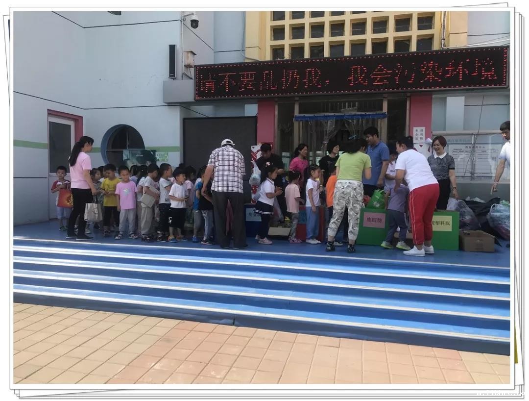活动气氛十分热烈。小朋友们纷纷将废塑料瓶、旧衣物等带到现场。